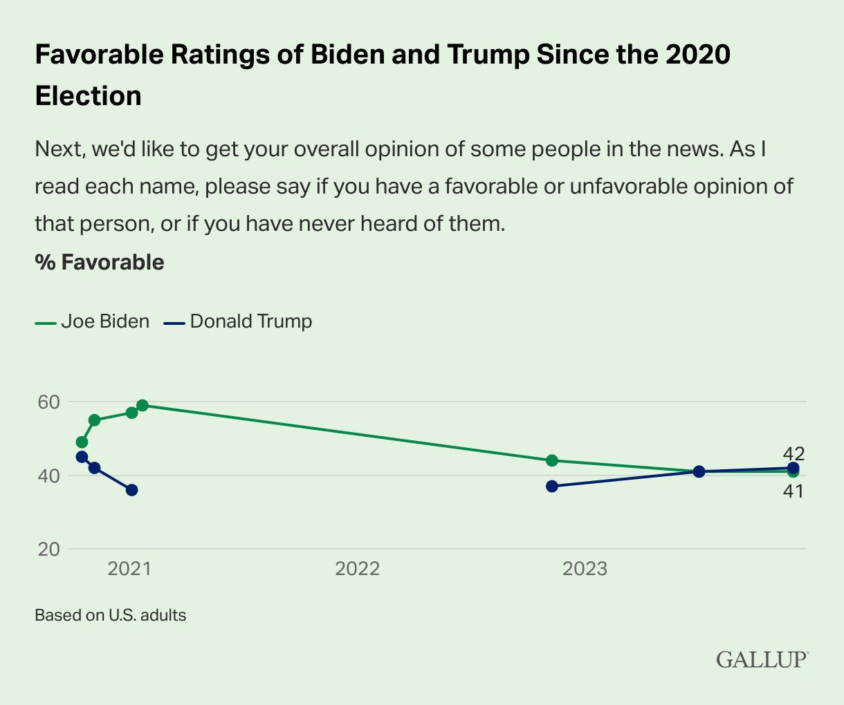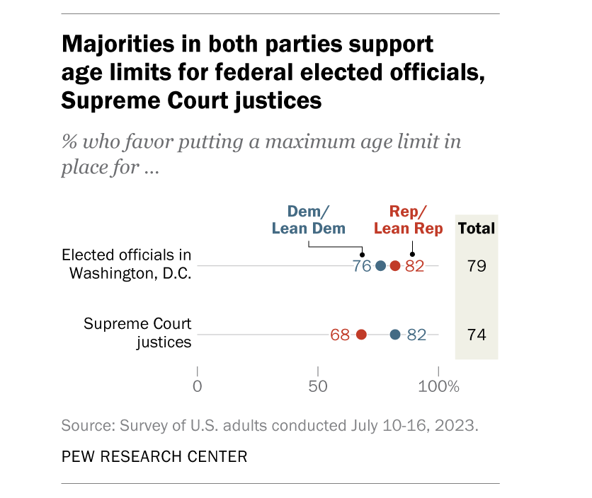 No matter what any other publication will tell you, both men aren’t exactly doing great. The age of both Presidents is an issue and could potentially be THE issue of this election. According to an October 2023 poll by Pew Research Center, most Americans, regardless of political party preference, favor age limits for those holding federal office.